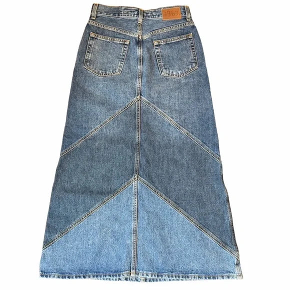GAP Denim Maxi Skirt Patched Indigo Made in Italy Size 1