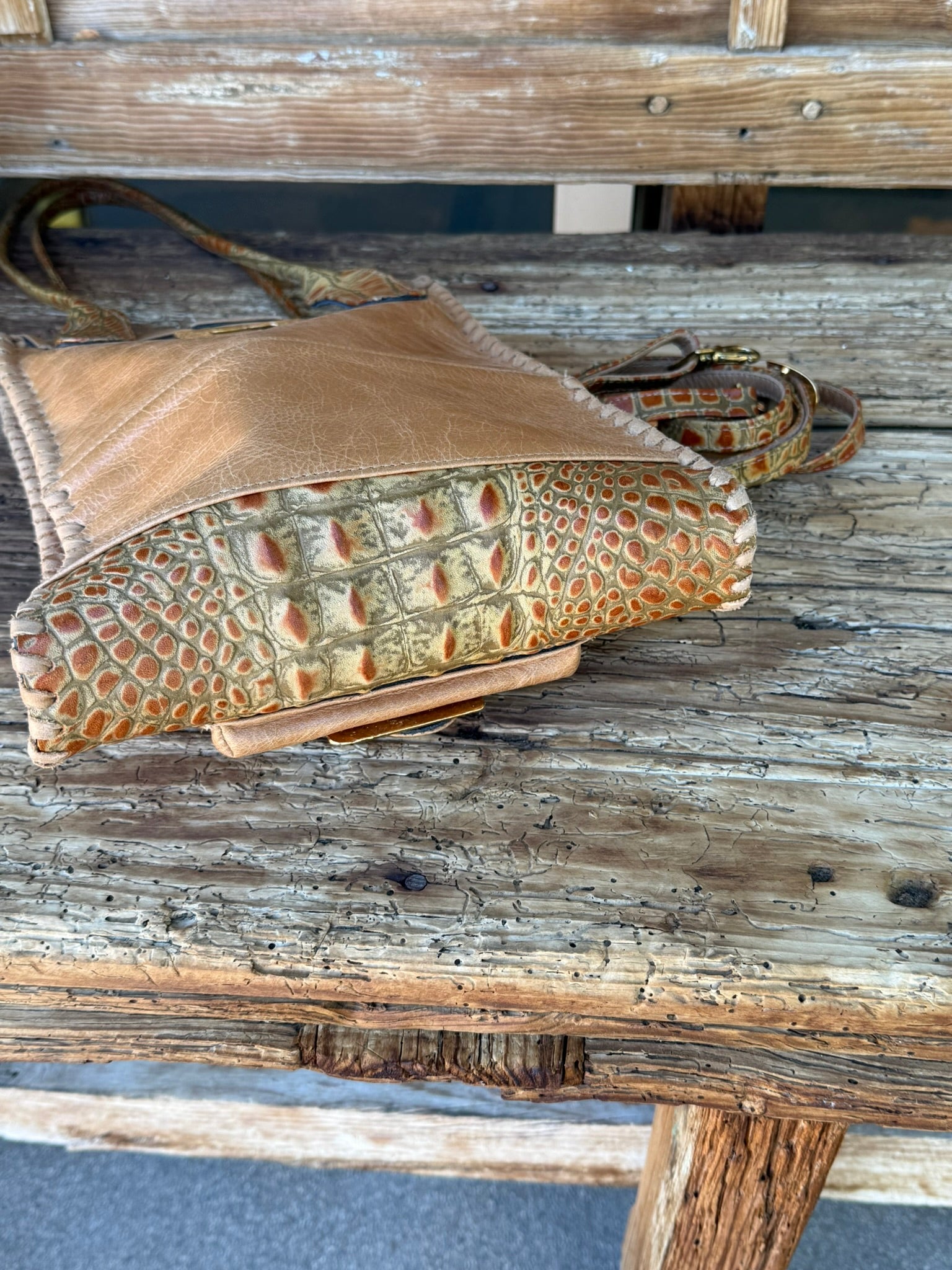 Tan Leather Tote Bag by J. Jansen with Citrine/Topaz Embellishments. Comes with Cross-Body Strap!