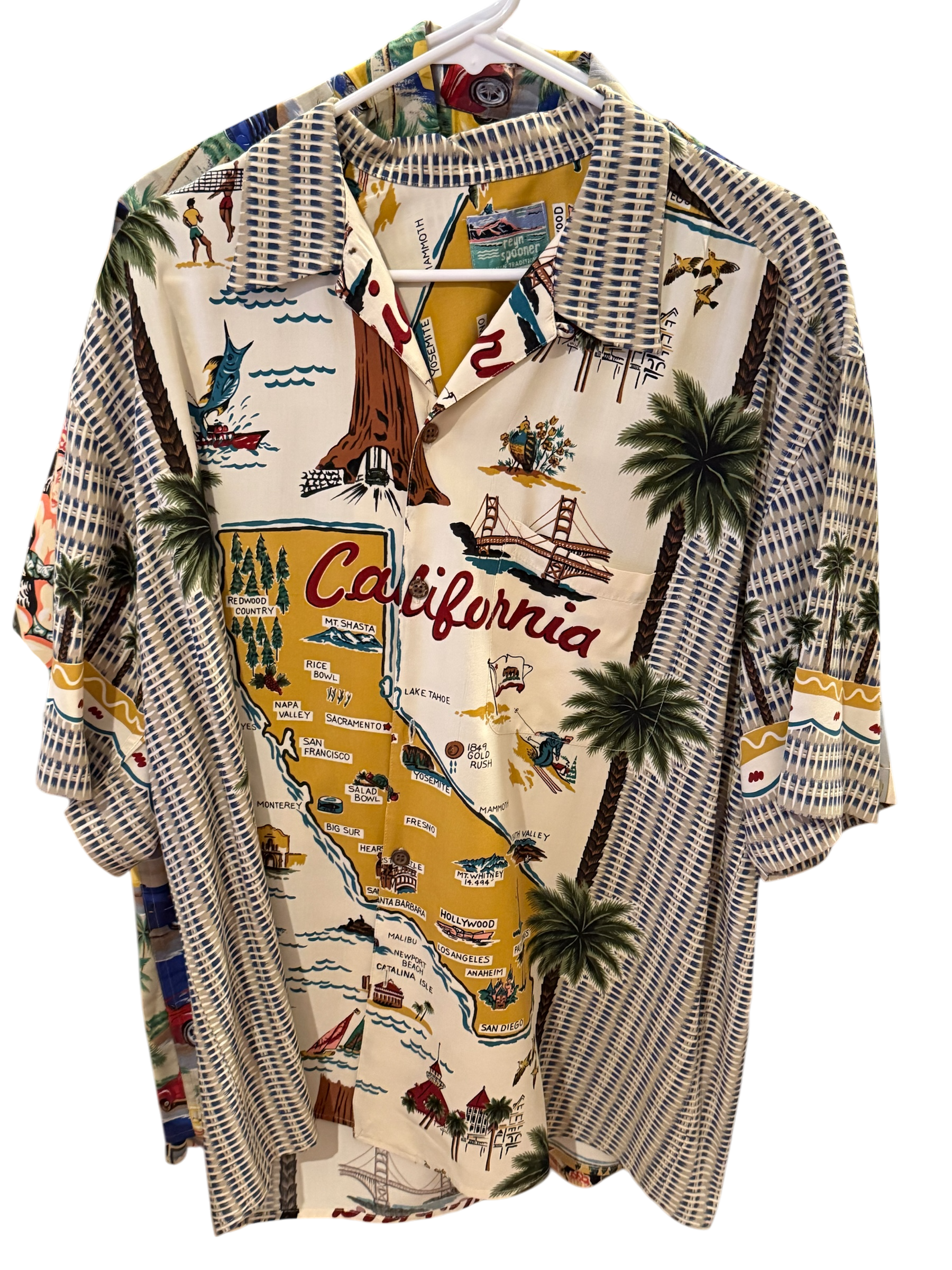 REYN SPOONER CALIFORNIA SHIRT, Rayon, Size L, 1980's