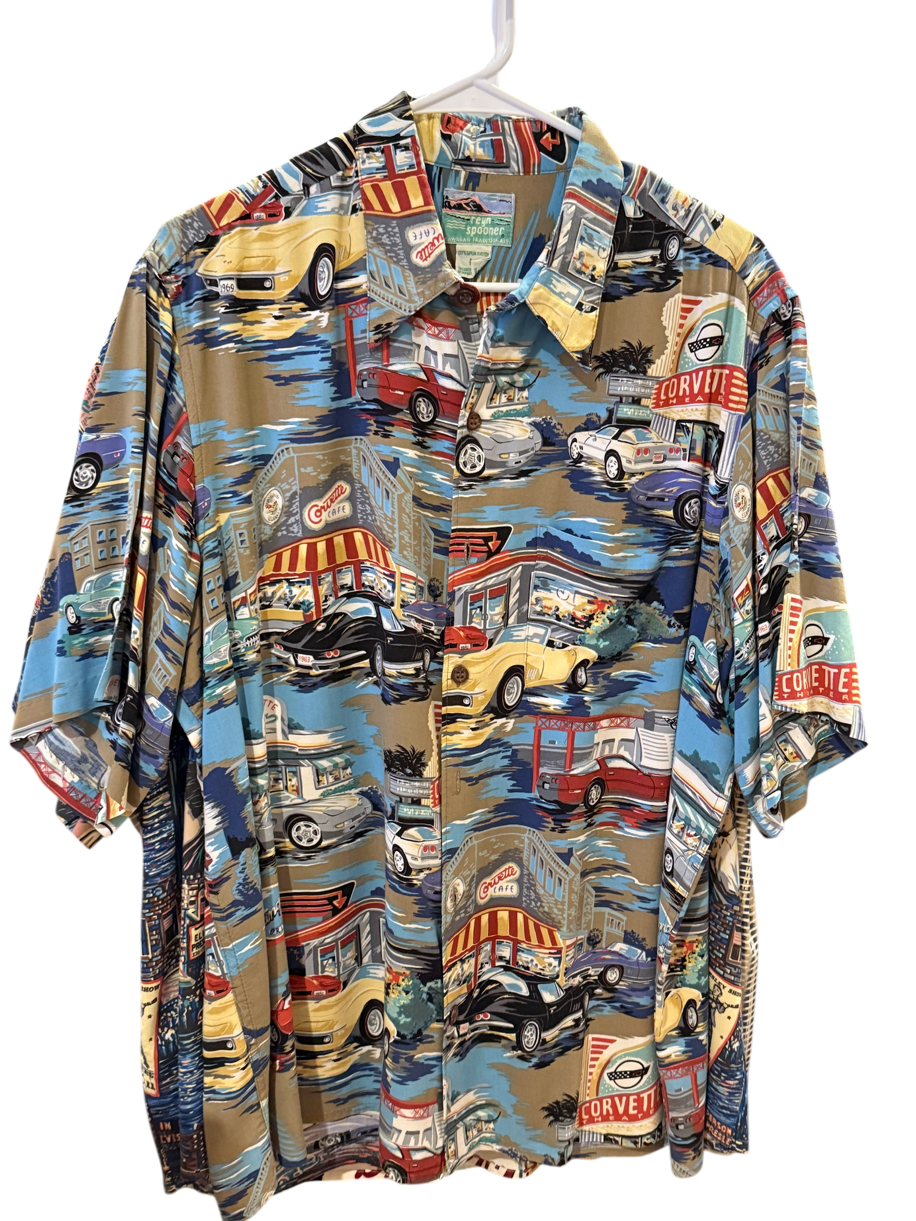 REYN SPOONER CORVETTE SHIRT, Vintage Rayon, Size L