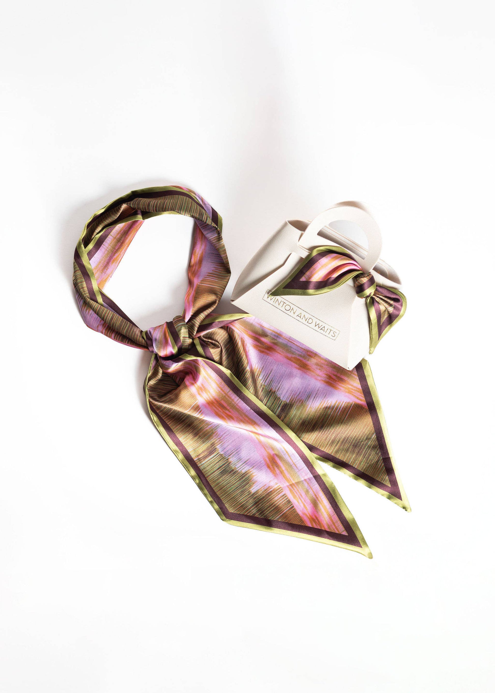 Bold print accessory scarf inspired by the classic Hermes Twilly.